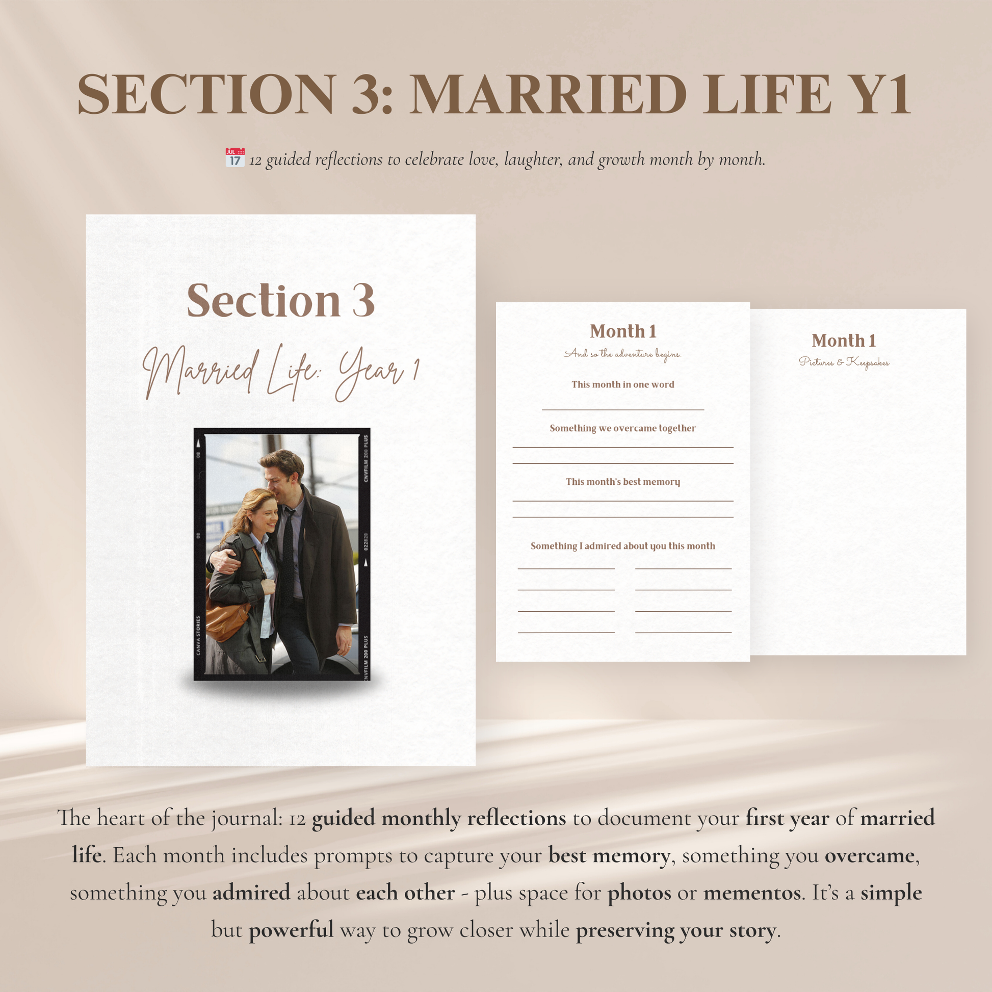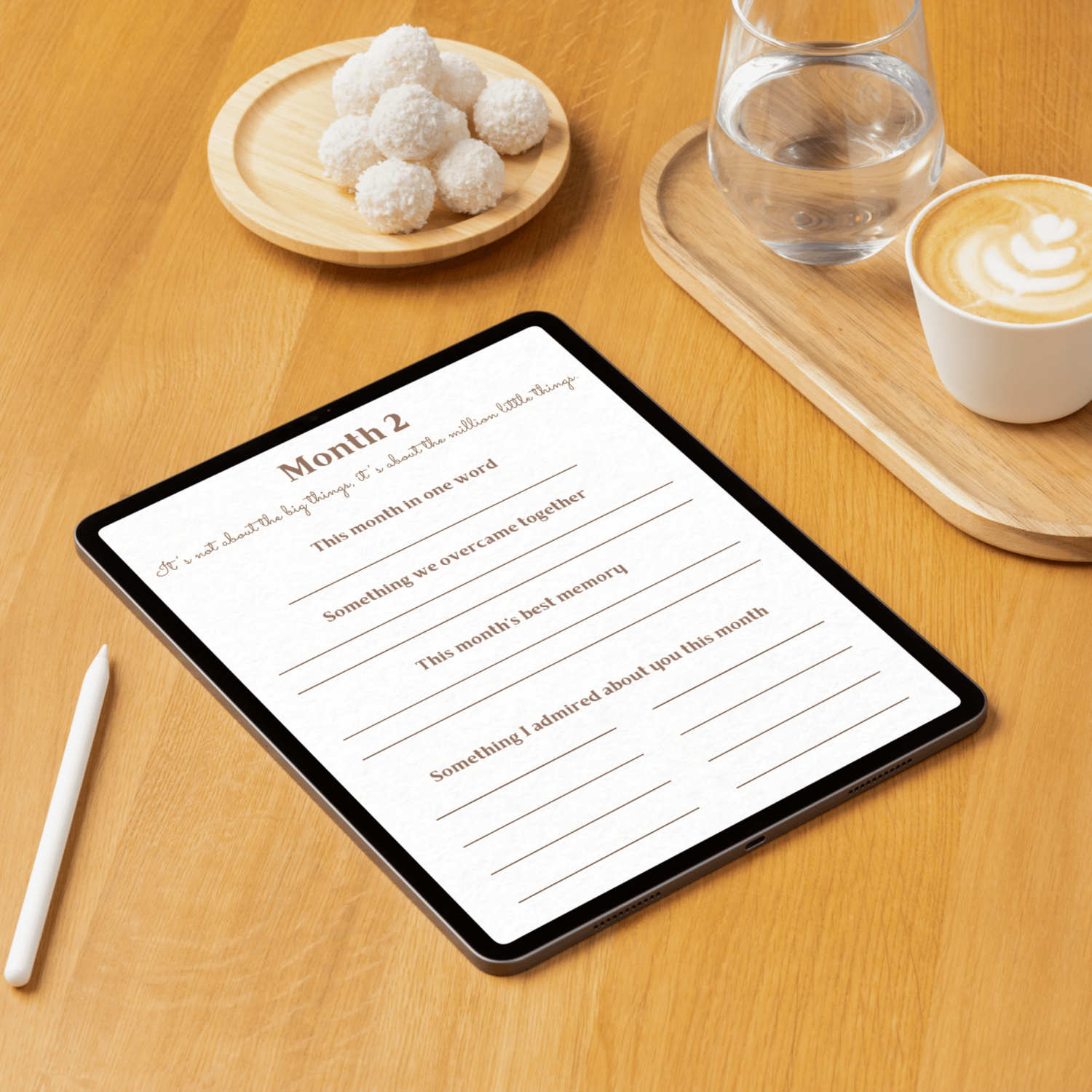 This isn’t just a journal - it’s a guided journey for you and your partner. With thoughtful prompts, bonding activities, and letters to your future selves, you’ll strengthen your connection while recording your story. Each page brings you closer, one month at a time.